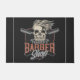 Gepersonaliseerde Barber Shop Hipster Skull en Razors, voorzien van bebaard hipsterskelet en een rechte scheermes. Pas aan met jouw naam of de Tekst van de Douane.