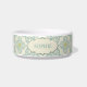Deze keramische kattenvoerbak heeft een stijlvol crème, groen en aquablauw bloemenpatroon op de achtergrond. In het midden is er een plek waar u gemakkelijk de naam van uw kat kunt aanpassen, geschreven in blauwgroen blauw.