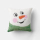 Aangepaste blije pret sneeuwman met groene sjaal kussen