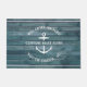 Nautical anchor boating doormat op gedrukte driftwood die "welkom aan boord"evenals uw naam en plaats van de douaneboot lezen.