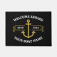 Welkom gasten in uw dok of meer huis met deze charmante, gepersonaliseerde Zwarte en Gouden nautische deurmat! Deze stijlvolle deurmat heeft een klassiek ankerontwerp, de woorden "Welcome Aboard", de naam van uw boot en het vestigingsjaar. De elegante, neutrale beige kleur en donkerbruine tekst creëer hebben een verfijnde kustlook die elk decor aanvult. Perfect voor booteigenaren, kapiteins en iedereen die van de nautische levensstijl houdt. Maak het echt uw eigen door de naam van uw boot toe te voegen voor een persoonlijk tintje. Een geweldig cadeau voor verjaardagen, bruiloften of housewarmings!