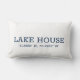 Aangepaste marine blauw en witte stad en coördinaten, Latitude en lengte lumbale kussen. De hoofdplaats is Lake House. (U kunt het aanpassen met uw eigen woonplaats) , klassieke, elegante lettertypemachinestijl lettertype ontwerp.