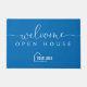 Introductie van onze aangepaste open huis welkom deurmat, speciaal ontworpen voor makelaars. Verwelkom bezoekers met professionele branding bij elke beurt. Getoond in een klassiek blauw-wit palet met een modern script lettertype voor "welkom", hoewel alle kleuren bewerkbaar zijn. Personaliseer de sjabloon met de titel van uw evenement en upload uw zakelijke logo. © Kimbelished, LLC