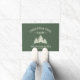 Welkom gasten in vakantiestijl met deze aangepaste deurmat! Met uw familienaam en een retro kerstboom boerderij ontwerp in salie groen, het voegt een feestelijke, gezellige touch aan uw ingang.