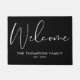 Een elegante zwart-witte deurmat met prachtige script kalligrafie welkom en gepersonaliseerd met uw familienaam en speciale datum. Ontworpen door Thisnotme©