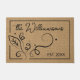 Deze eigentijdse deurmat heeft een landelijke boerderij cottage textiel uiterlijk, compleet met een antiek bloemenmotief. Het biedt de mogelijkheid om aan te passen met de achternaam van uw familie en een gekozen vastgesteld jaar en datum. Perfect voor het verbeteren van de patio of veranda van een huis.