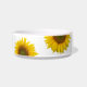 Aangepaste florale kom met een gele zonnebloem op een witte achtergrond. Met zwarte letters kun je je eigen tekst aanpassen. Ideaal om een landaanraking toe te voegen aan de accessoires van je speciale hond of kat.