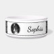 fotosjabloon met een zwart hondpoeppatroon op een grijze achtergrondkleur. Personaliseer door de steekproeffoto in een foto van uw eigen huisdier te veranderen. Geef ook het personalizable tekstgebied met de naam van uw gezelschapsdier uit. De douanefoto wordt getoond door een ronde vorm die een ongelijke zachte rand aan om het even welk afbeelding geeft. Bovenaan en onderaan hebben een dunne zwarte rand.