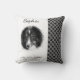 Aangepaste fotosjabloon en zwarte peugen op grijs kussen