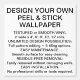 Aangepaste gepersonaliseerde PEEL EN STICK GESTRUCTUREERDE VINYL BEHANG blanco sjabloon. Getextureerd of glad vinyl. 2' brede x 4', 6', 8', 10', 12' lange rollen of 1' teststaal. Onbeperkte ontwerpmogelijkheden: volledige patroonbewerkingstools, inclusief 5 tegelopties. Eenvoudig onderhoud: glad oppervlak voor eenvoudige reiniging. Residuvrij verwijderen: gemakkelijk te verwijderen zonder muren te beschadigen. Eenvoudige installatie: doe-het-zelfvriendelijk zonder professionele vaardigheden of hulpmiddelen. Het beste voor een unieke woonruimte, kinderkamer of kinder slaapkamerthema behang, op maat gemaakte huisinrichting of merkwinkel, bar, café, restaurant, horeca of kantoor-omgeving.