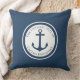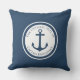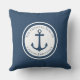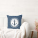 Dit op maat gemaakte kussen heeft een wit en marineblauw nautisch thema. Een afbeelding van een bootanker wordt geplaatst in het midden over een witte achtergrond. Bovenaan is de uitdrukking "het officiële zegel van" gedrukt met onderaan een voorbeeldnaam van de kapitein. U kunt het kussen personaliseren om uw eigen naam als kapitein op te nemen of de tekst te vervangen. De rand heeft een bijpassende marineblauwe kleur.