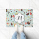 Onze Happy Birds in Fields of Flowers design deurmat is zo , leuk, grillig en kleurrijk dat je er zeker verliefd op zult herfsten! Een leuke grillige vogeltjes, bloemetjes en hartjes design in groen, crème, koraal, chocoladebruin en blauw, deze leuke, kleurrijke, grillige deurmat heeft een witte bloemvorm banner die je gemakkelijk kunt personaliseren met je monogram initiaal!