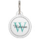 Aangepaste Pet Name Blauwgroen Monogram White Pet ID tag.