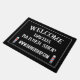 Custom kapper winkel deurmat met rode en blauwe kapper paal teken. Personaliseer met uw eigen bedrijfs- / bedrijfsnaam. Zwart-wit deurmat.