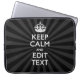 Aangepaste KEEP CALM en jouw tekst op zonnesburst Laptop Sleeve