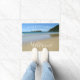 Breng strandvibes naar je strandhuis met deze levendige deurmat. Het ontwerp bevat de blauwe hemel en aqua golven van Seal Rocks, voor de kust van Sydney, Australië. Pas het aan door uw familienaam toe te voegen.
