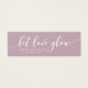 Deze stijlvolle minikaart kenmerkt de woorden "laat gloed van de liefde"in wit manuscript en een editable achtergrondkleur (de klik past aan toegang aan). Het maakt een geweldig label voor je bruiloft... voor cadeautjes. Het is gemakkelijk om te personaliseren; vervang enkel de placeholder tekst om uw eigen informatie toe te voegen. Voor meer opties zoals het veranderen van de doopvont, de tekstgrootte of het uit elkaar plaatsen tussen brieven klik de "aanpassen"knoop. *Gelieve te merken op dat het Zazzle Watermerk dat in de gezoemvoorproef verschijnt NIET op het definitieve gedrukte product zal verschijnen. © Rosewood en Citrus
