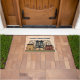 Kleurrijke Amerikaanse folk-kunstdeurmat met een primitieve grafische voorstelling op het platteland. De blauwe tekst, bij de bovenkant van de mat, is klaar om voor zich of als geweldig cadeauidee te personaliseren. Wat een mooie manier om gasten bij je thuis te verwelkomen.
