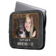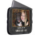 Laptophoes met een donkerbruin leren design met uw eigen persoonlijke foto en (grappige of andere) teksten