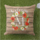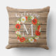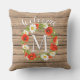 Fun en schattig in de openlucht gooien kussens met witte en gele Dagen en rode papaverbloemen, op een weersachtig houten plankpatroon. Met ruimte om aan te passen of aan te passen met gezinsmonogram of initiaal van uw keuze.