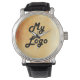 Voeg je eigen zakelijke logo toe aan dit horloge. Faux gouden achtergrond. Ideaal om uw bedrijf en merk te promoten. Het horloge is ook beschikbaar in onze winkel met klokletters in zwart-wit of wit