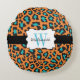 Aangepaste luipaard Oranje, zwart, Aqua Round Pill Rond Kussen