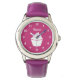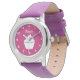 Custom kind horloge met schattig roze cupcake afbeelding ontwerp. polshorloges voor kinderen. Uniek verjaardagscadeau idee voor meisjes. Creëer een voor speciale dochter, kleindochter, schattigste neef, vriend, kind, kleinkind, kleine of grote zus, moeder, vegetarisch enz. Leuk fruitontwerp met cijfers en elegante typografische sjabloon. Ook leuk als kerstcadeau voor de Feestdagen. Inclusief paarse kleurenband. Voeg je eigen naam of monogram initiaal letters toe.