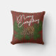 Mooie klassieke rode en donkergroene abstracte dennennaalden zigzag chevron patroon met seizoensgebonden afbeelding van dennenkegels en naalden, en een klassieke prettige Merry Alles groet Wens die je kunt aanpassen of personaliseren aan je eigen smaak. Een het seizoensontwerp van december voor de buitenontwerper, of de minnaar van de huislandstijl die van de wintervakantiethema's houdt. Oorspronkelijk modern kussen voor het versieren van de veranda, de patio of de achtertuin die uw kajuit, huisje, meer of vakantiewoning in de rivier plaatst.