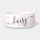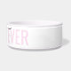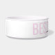 Roze, zwarte en witte hondenkom met grijze "BEST DOG EVER" en de naam van uw hond die in een de tekstbekleding van de het lettertype van het klinkende en elegante calligrafische manuscript wordt aangepast. Ga om het even welke gepersonaliseerde tekst in u voor de achtergrond en de hoogste laag van tekst aan creëer uw eigen roze gepersonaliseerde moderne en minimale en leuke keramische huisdiervoeding of waterkom houdt. Bekijk ons collectie om bowls te coördineren en een set te krijgen!