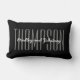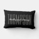Eenvoudig modern huiskussen met een stijlvolle zwarte achtergrond, uw achternaam in een groot schoon lettertype en uw voornamen in een elegant scriptlettertype. Alles op deze kussen kan worden aangepast aan de stijl van je huis. Dit zou een unieke gave zijn voor nieuwigheden.