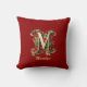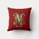 Aangepaste Monogram M Christmas Red Gold Kussen