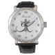 Aangepaste monogram religieuze cross horloge cadeau voor mannen. Elegante Romeinse cijfers met stijlvolle scripttypografie en icoon. Classy zwart lederen band. Chique zwart-wit Christelijk geloof monogram logo met aangepaste naam initiaal letter, citaat of achternaam. Uniek geschenk idee voor diaken, predikant, ministerie, vrienden, familie, broer, vader, opa, grootvader, echtgenoot, zoon, baas, collega, coach, kerkpastoor, priester, katholiek, baptist, lutheraans, evangelisch, methodist, protestant enz. Voeg uw eigen datum, spiritueel citaat, inspirerend geschriften, herdenkingswoorden, Jezus gezegden of aangepaste bijbel vers. Gepersonaliseerde christendom symbool cadeaus voor hem en haar. Ook leuk voor andere gelegenheden zoals herdenking, wijding, doop, bevestiging, communie, herdenking, begrafenis, dank u, felicitaties, bruiloft, jubileum, wijding, verjaardag enz. Gepersonaliseerde polshorloges voor volwassenen en kinderen. Diameter 44,45 mm.