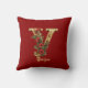 Aangepaste Monogram Y Kerst Rood Goud Gooi Kussen