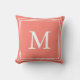 Een groot wit monogram verschijnt op een zalmachtergrond. Het monogram heeft een dubbele witte vierkant rand. Pas de witte zalm aan en gooi de kussen met uw initiaal/monogram.