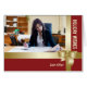 Goudkijkende strik voegt een elegante aanraking toe aangezien het de foto in een cadeaukaart voor de feestdagen verpakt. De rode achtergrond zet het gouden digitale 3D lint af.