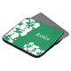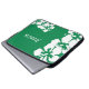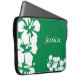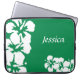 Een laptophoes met een aangepast White Hibiscus floral design op een Emerald Green-achtergrond. De naam kan worden gewijzigd met de optie Aanpassen.