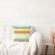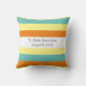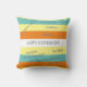 Grappig en elegant "Happy Retirement"-kussen met de naam van de gepensioneerde werknemer op de rug, samen met de maand en het jaar van hun pensionering. De kussen hebben een elegant ontwerp van kleurenbanden in drie kleuren: lichtgeel, blauwgroen en oranje — en wit. Aan de voorzijde staan naast het bericht "Happy Retirement" nog een aantal andere aanpasbare teksten: "Family and Friends" + "Hobbies" + "Travel" + "Pension with no spannen" + "Me time" + "Shooting the brieze" + "No baas"
