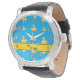 Aangepaste naam gele stripe hemelblauwe rubbereend horloge