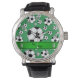 Aangepaste naam leuke groene voetballen groene str horloge