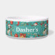 Deze kom is een turquoise getinte eerbetoon aan de staart-kwispelende kerstchaos - ingepakte cadeaus, kerststokken en honden in sjaals dwarrelen rond als de dromen van je huisdier om het kerstdiner te stelen, allemaal gecentreerd rond hun naam alsof ze de CEO zijn van feestelijk feesten.