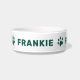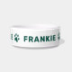 Deze unieke huisdier- of kattenbak is voorzien van hun naam in een moderne stijl van alle petten met een schattige pootdruk rond de kom. Een eenvoudig en schoon ontwerp voor je levendige familielid. De donkergroene tekst en de tekenkleur kunnen worden gewijzigd.