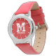 Aangepaste Naam en Monogrammed Vetgedrukte Tekst Meisje Naam Rood en Zilver Horloge.