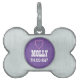 Dit hondenras met zijn paarse achtergrond en in de vorm van een bot is een trendy label voor uw label! Pas het aan met de naam van uw hond en uw contactgegevens.