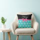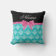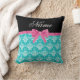 Aangepaste naam turkooise damask roze glitter bow kussen