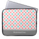 Laptop hoesje met leuke en moderne perzikkleurige oranje roze, turquoise aqua blauw, grijs en wit casual en retro cirkels en diamanten geometrisch patroon. Pas dit hoesje met uw eigen naam of andere douanetekst aan creëer een echt uniek hoesje aan. Neem contact met ons op om een kleurwijziging aan te vragen.