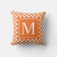 Aangepast Oranje chequemonogram Sierkussen, gemakkelijk te personaliseren met jouw naam initiaal. Verkrijgbaar in veel stijlvolle, moderne kleuren!