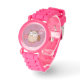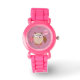 Dit geweldige horloge heeft een schattige bruine uil met grote slapende ogen. De uil houdt een bleke roze ballon en een bouquet fel roze bloemen in een bleek roze kegel. De ballon heeft aanpasbare tekst binnenin zodat u het kunt personaliseren om het even welke leeftijd van 1 tot 100 te vieren.