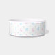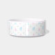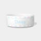 Een zoet patroon met roze en blauwe puppies met muntgroene sterren op een witte achtergrond. Pas deze kom aan met de naam van uw huisdier!