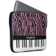 Aangepaste piano-toetsen Roze Glitter Zebra Afdruk Laptop Sleeve
