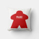 Deze meepelkussens kunnen met een naam in witte doopvont worden gepersonaliseerd. Aan de ene kant is er een groot rood meepel met de aangepaste tekst. Aan de andere kant is er een patroon van kleine rode epilepjes die de andere kant aanvullen. Beide zijden hebben een witte achtergrond.